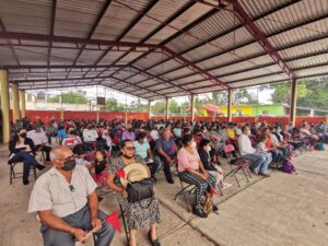 Habitantes y líderes de las comunidades, La Tinaja, El Guayabo, Rancho Nuevo, Moctezuma y La Aurora del municipio de Emiliano Zapata, se dieron cita en las canchas de esta última comunidad para escuchar la plática de la Ing. Minerva Salcedo Baca, dirigente del Movimiento Antorchista en la región del centro del estado. La conferencia llevó por nombre ¿Qué es Antorcha?, en ella, la líder social habló sobre los objetivos de la organización a más de 47 años de su fundación, y de cómo la organización de unos cuantos campesinos de Tecomatlán, Puebla, hoy se ha convertido en la organización social más grande y mejor estructurada del país.