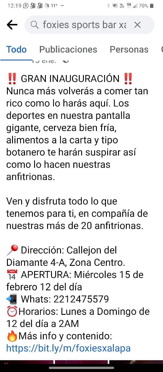 “Foxies Sport Bar” dicho negocio funcionará a partir del miércoles 15 del año en curso en el Callejón del Diamante 4-A Zona Centro.