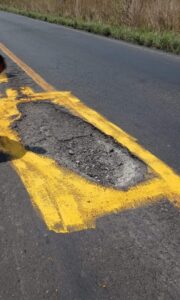 Pintaron de color amarillo los numerosos hoyancos de la carretera Cardel-Poza Rica en el tramo “Laguna Verde-Farallón”, así es como muestran las zonas de peligro en la vialidad.