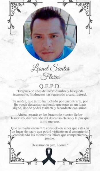 “Después de años de incertidumbre y búsqueda incansable, finalmente has regresado a casa, Leonel”, publicó el colectivo en sus redes sociales. El mensaje, acompañado de una imagen suya, rinde homenaje a su memoria y a la lucha de su madre, quien nunca cesó en su afán por encontrarlo.