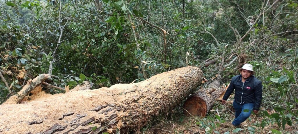 En las imágenes difundidas por las autoridades se observan troncos recién derribados, tablones cortados y personal policiaco recorriendo la zona.