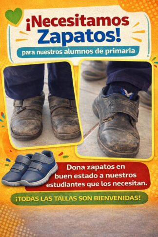 Bajo el lema “¡Necesitamos zapatos para nuestros alumnos de primaria!”, las docentes hacen un llamado solidario a la ciudadanía para donar zapatos en buen estado. Destacan que todas las tallas son bienvenidas, ya que la necesidad es diversa entre los estudiantes.