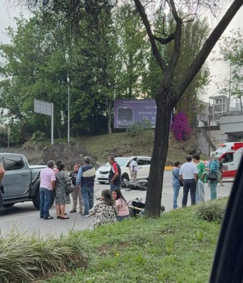 Xalapa, Ver., 11 de abril de 2026.— La tarde de este sábado se registró un accidente sobre la avenida Lázaro Cárdenas, a la altura de CAXA, en el que se vieron involucrados dos motociclistas y una camioneta, dejando como saldo dos personas lesionadas.