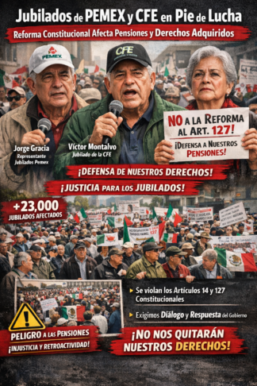 Integrantes de asociaciones de jubilados del sector energético, principalmente de Petróleos Mexicanos (Pemex) y la Comisión Federal de Electricidad (CFE), expresaron su rechazo a la reciente reforma al artículo 127 de la Constitución, al considerar que vulnera derechos adquiridos, afecta sus pensiones y debilita la seguridad jurídica en el país.