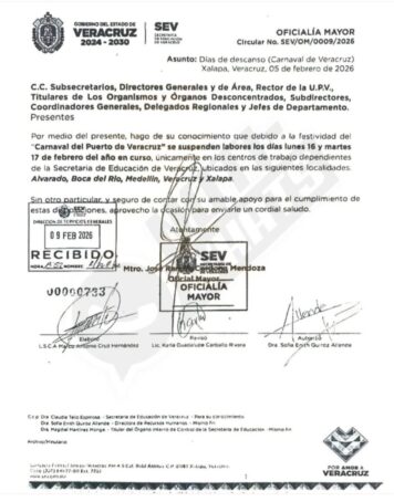 Xalapa, Ver.— La Secretaría de Educación de Veracruz (SEV) oficializó la suspensión de actividades docentes y administrativas los días lunes 16 y martes 17 de febrero, con motivo de las…