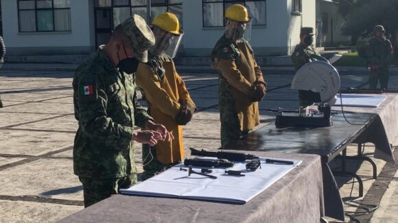 El 63 Batallón de Infantería realizó la demostración para la destrucción que realizará de 710 armas que fueron decomisadas por el Ejército Mexicano